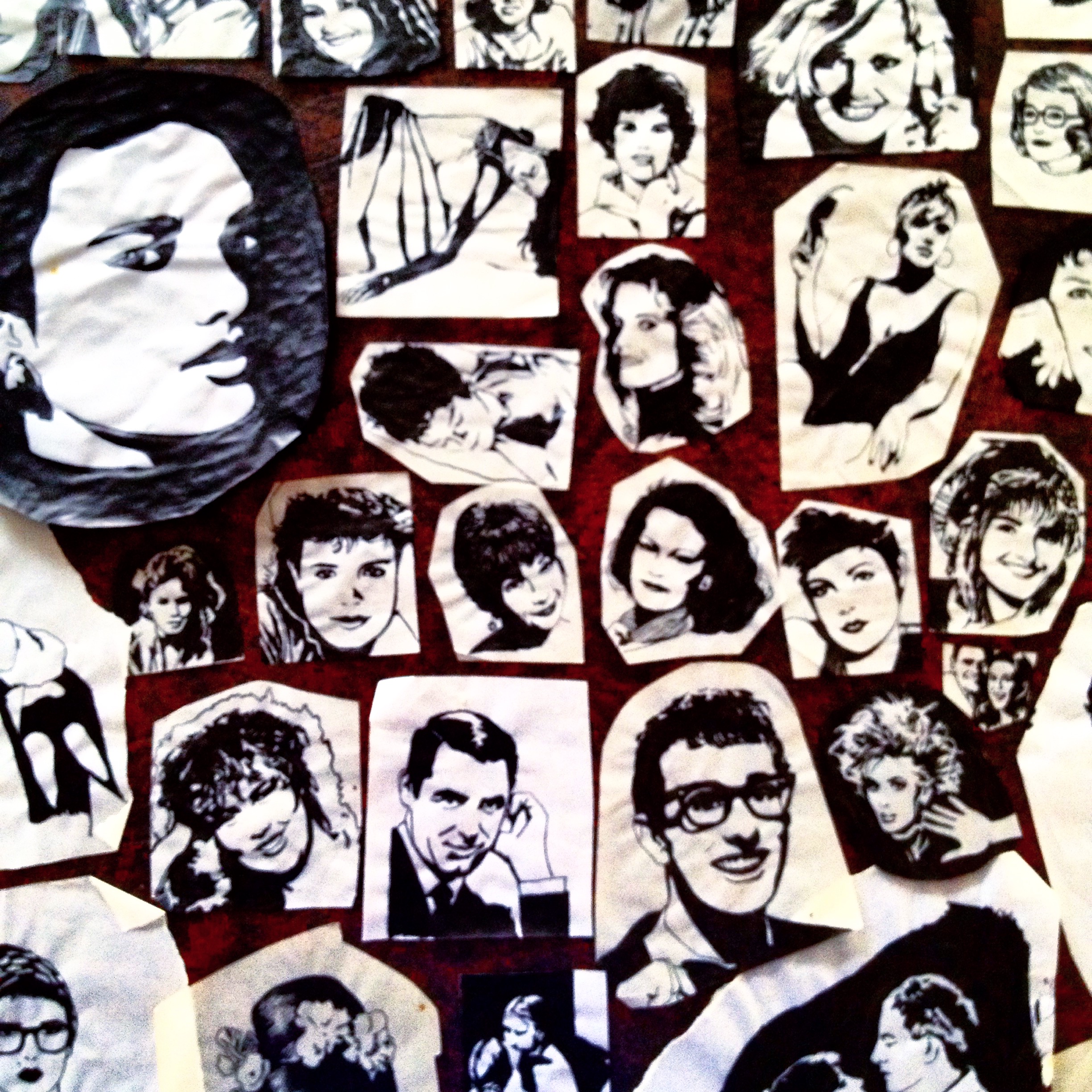 I rang Sharon around 9:15. she said she was going to Crystals with Heather AnneMarie & Linda. HITCHING a ride. I said ‘no thanks!’ [My parents schooled me and my sister to never hitchhike for potential danger it posed. I actually don’t think I have ever done it, to this day…] She rang back a little later though, saying she’d chickened out too. So I ended up riding to her place [mind you, cycling – particularly on roads – can be pretty bloody dangerous too…] (took me ½hr) (with my new bag!) and, after lunch, we rode to Trinity. Lay in shade – went for a swim pigged out, went for a walk on the rocks, then rested. Pigged out again before we left. (Faster coming back) At Sharon’s we picked up grass cuttings. [Surely that was a chore, and not for ‘fun’?] I left around 5:00 – we [we? maybe Sharon rode part way with me?] stopped at Smithfield. Ate ½ a crunchie Good ride home (very tired.) Tonight I did more tracings. A Life in Words[Basically, with a pot of ink, a nib and artist’s tracing paper, I created duotone pictures from photos and magazine images. See pic] Thinking I should have rung Mark. Will have to tomorrow night. You know, I haven’t seen him for almost 3 weeks? I’ll die! Nah! [Clown] No rain today – cloudy. VERY HOT. Is 9:20 mima & Fi should be back soon. The 8th(?)